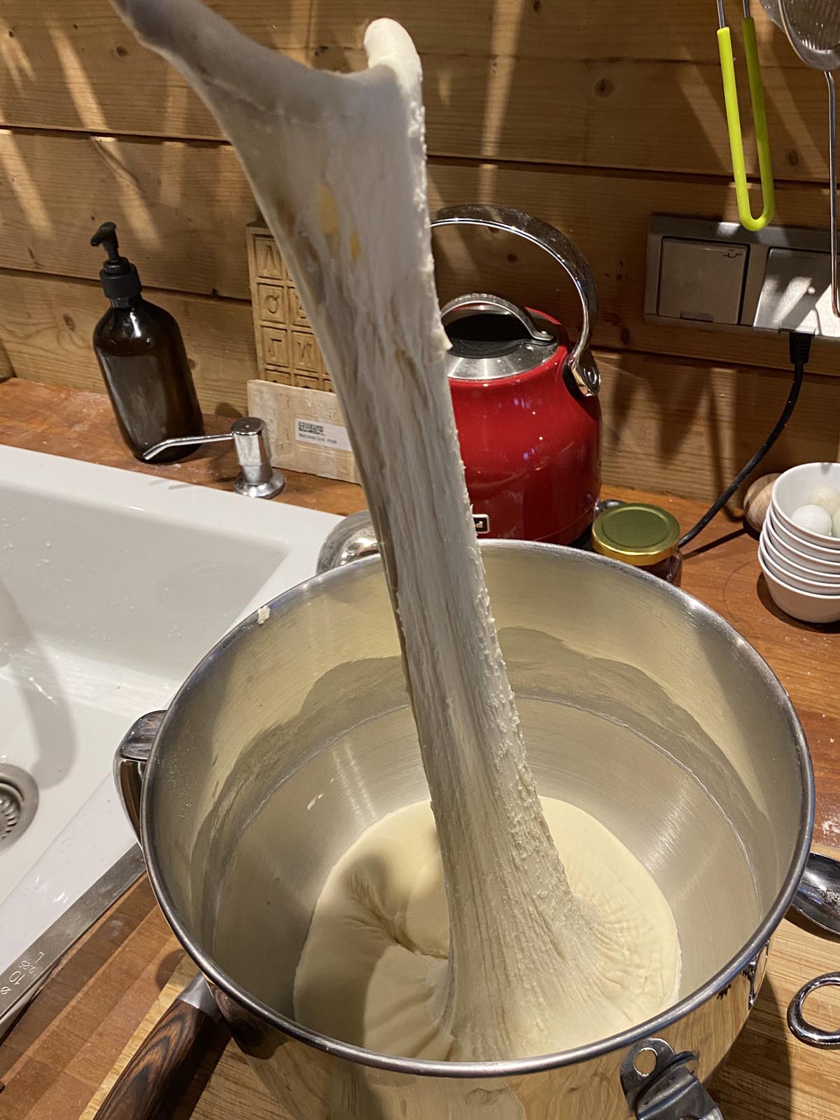 bereits nach 20 Minuten kneten ist die Masse sehr dehnbar