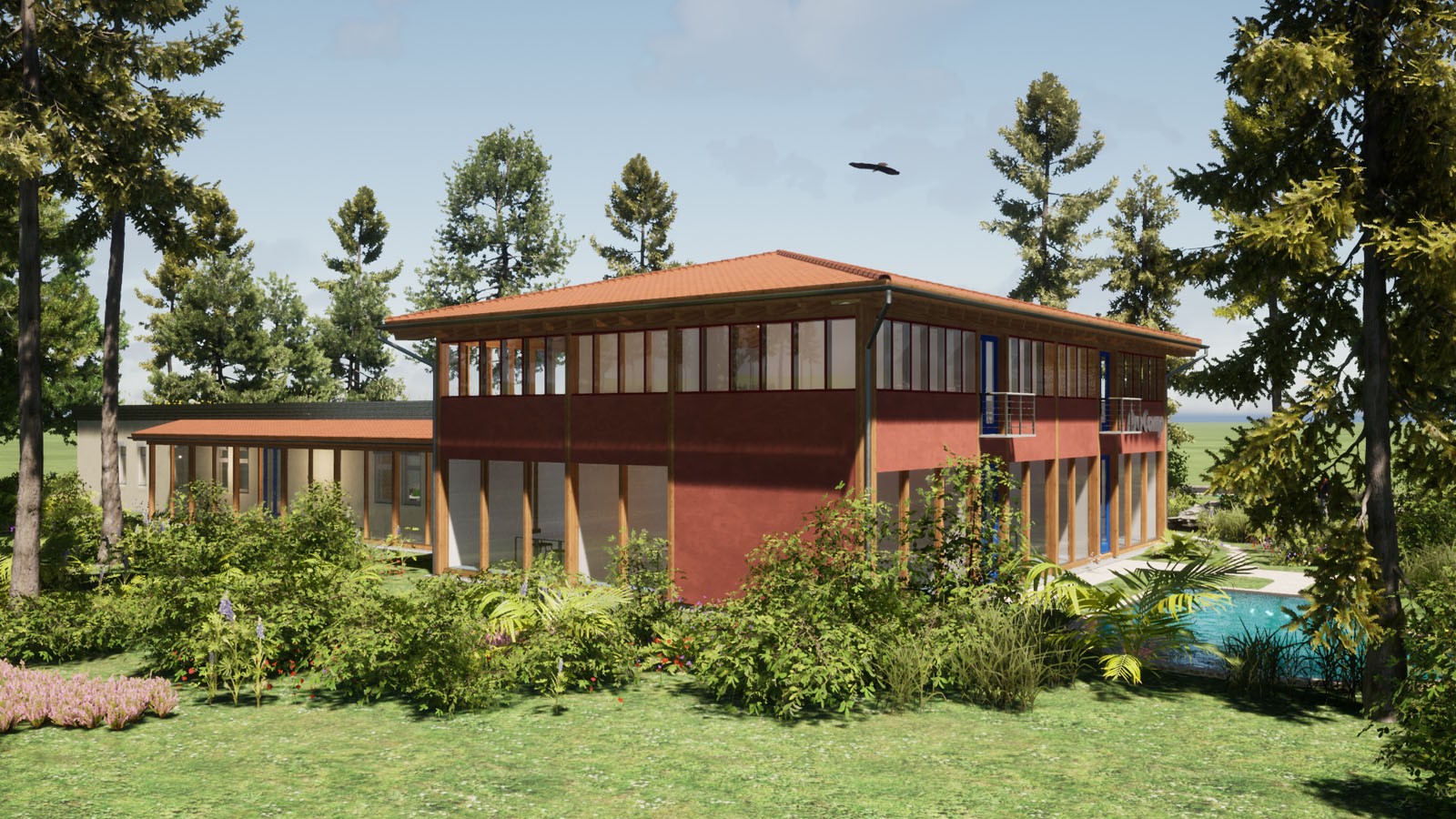 Holzskelettbau - verputzt - Nullenergiegebäude